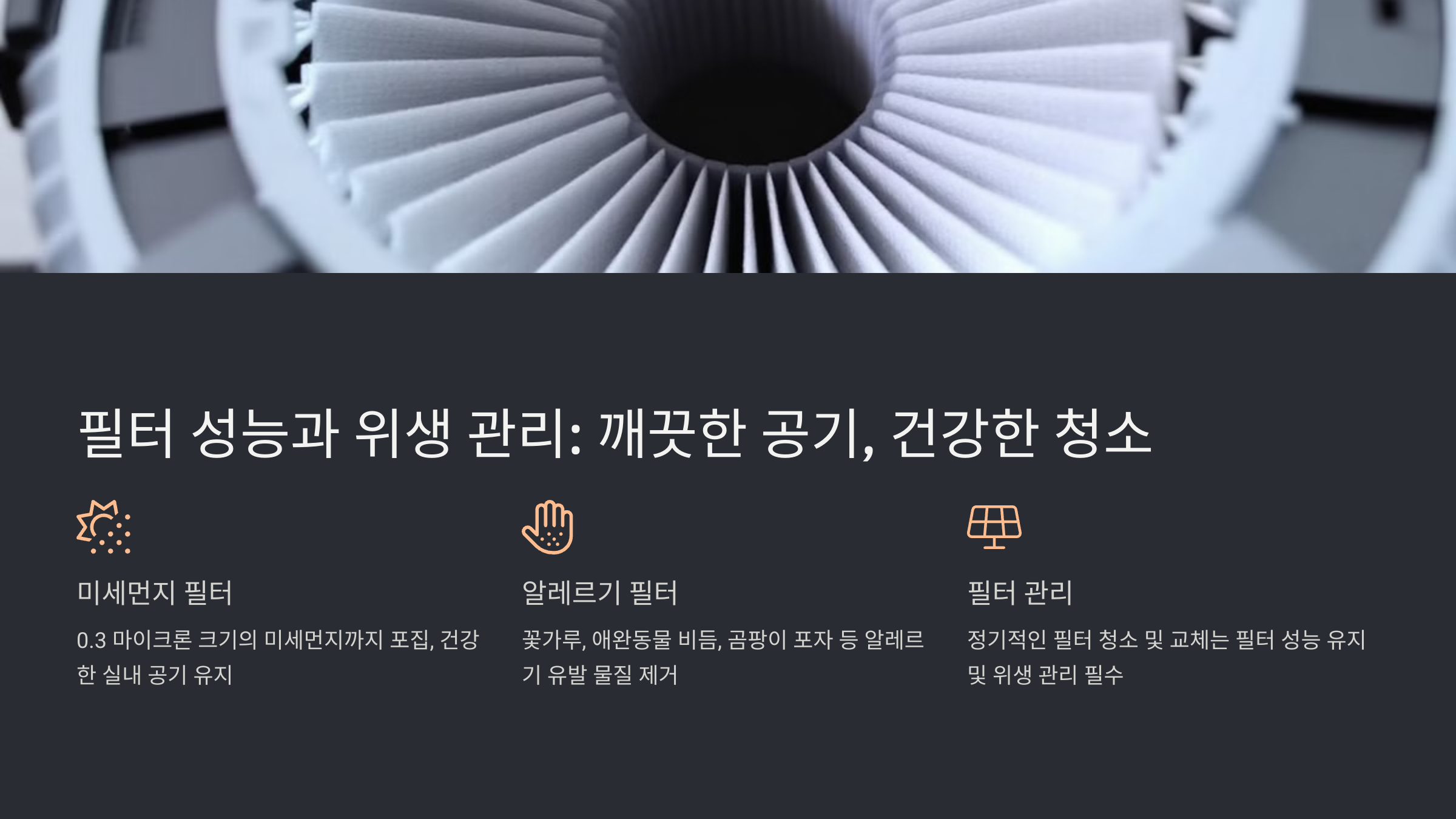청소를 깨끗하게 하려면 필터 성능도 중요해요! 흡입한 먼지가 다시 공기 중으로 퍼지지 않도록 **고성능 필터**를 갖춘 제품을 선택해야 해요. 🌬️