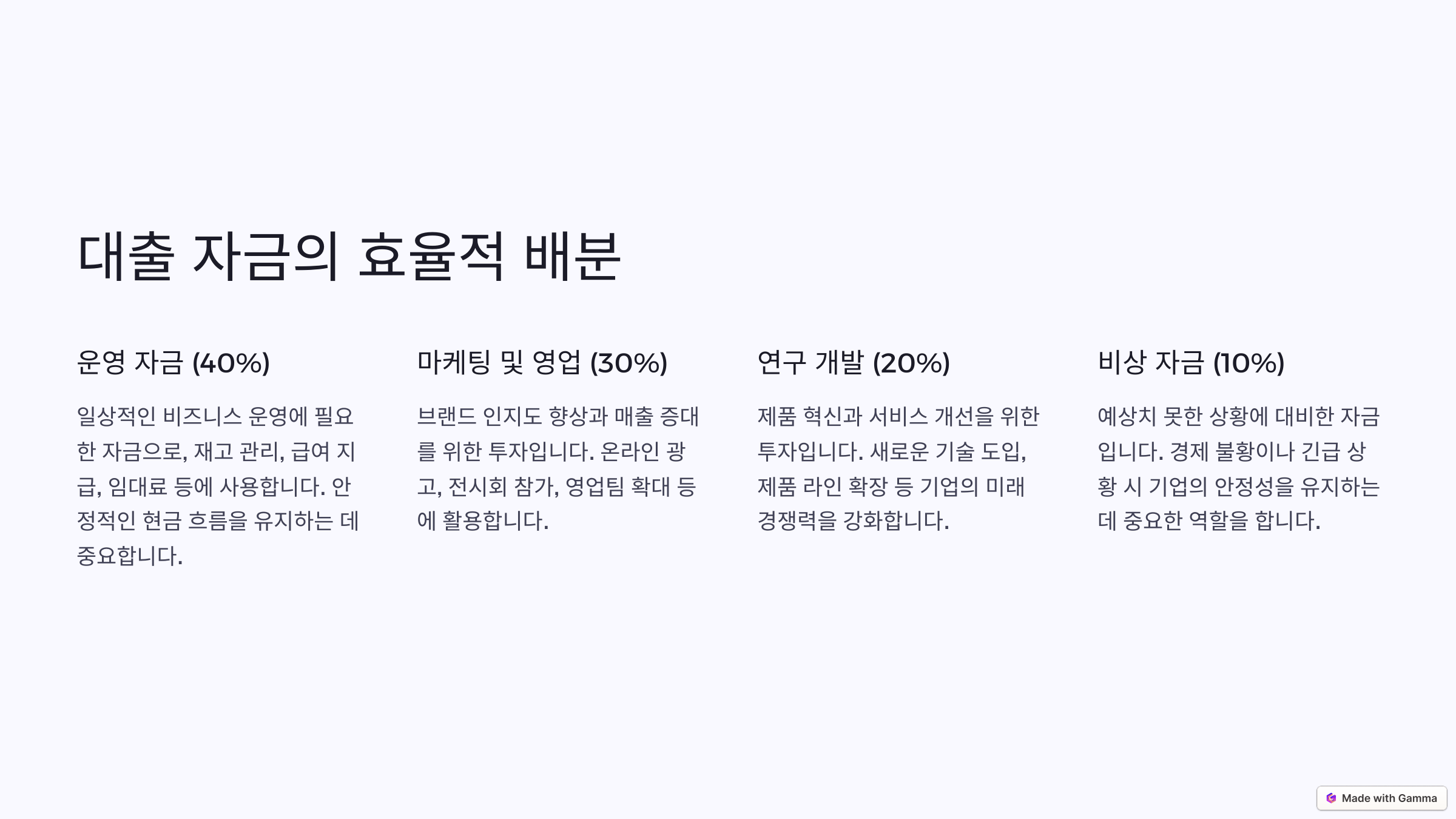 대출 자금을 어떻게 배분하느냐는 사업 성패를 가르는 중요한 요소예요. 가장 먼저 필요한 것은 사업의 어떤 부분이 가장 많은 투자를 필요로 하는지 파악하는 거예요. 보통 마케팅, 생산, 인력 고용, 기술 개발 등이 주요 투자 대상이 될 수 있어요.