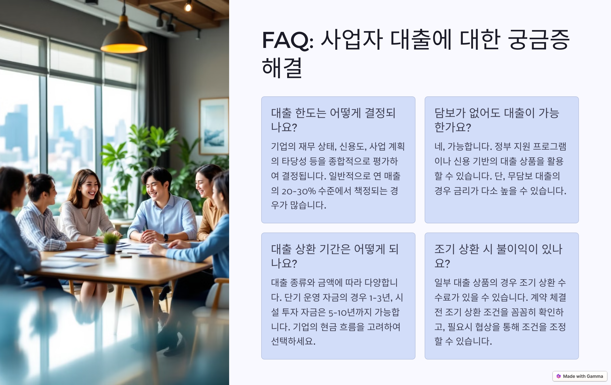 A6. 가능하지만, 대출은 자금 부족으로 인한 성장을 가속화하는 데 중요한 역할을 할 수 있어요.