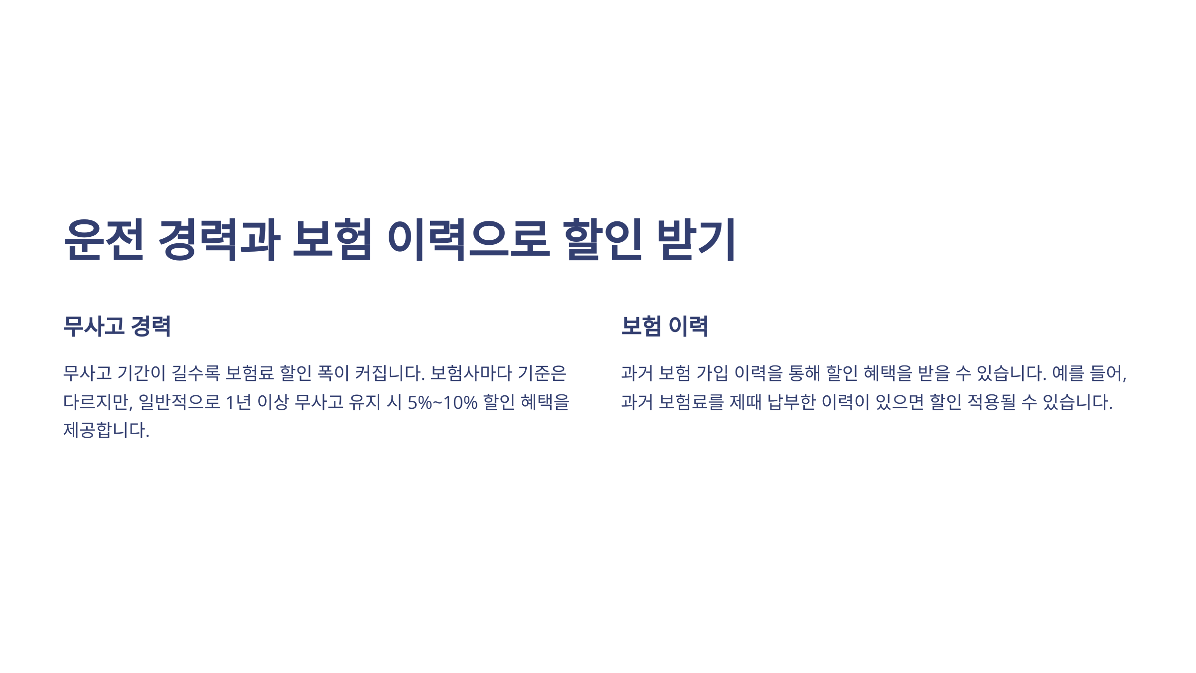 요. 사고 없이 일정 기간 이상 운전한 기록이 있다면, 보험사에서 무사고 할인 혜택을 제공합니다.