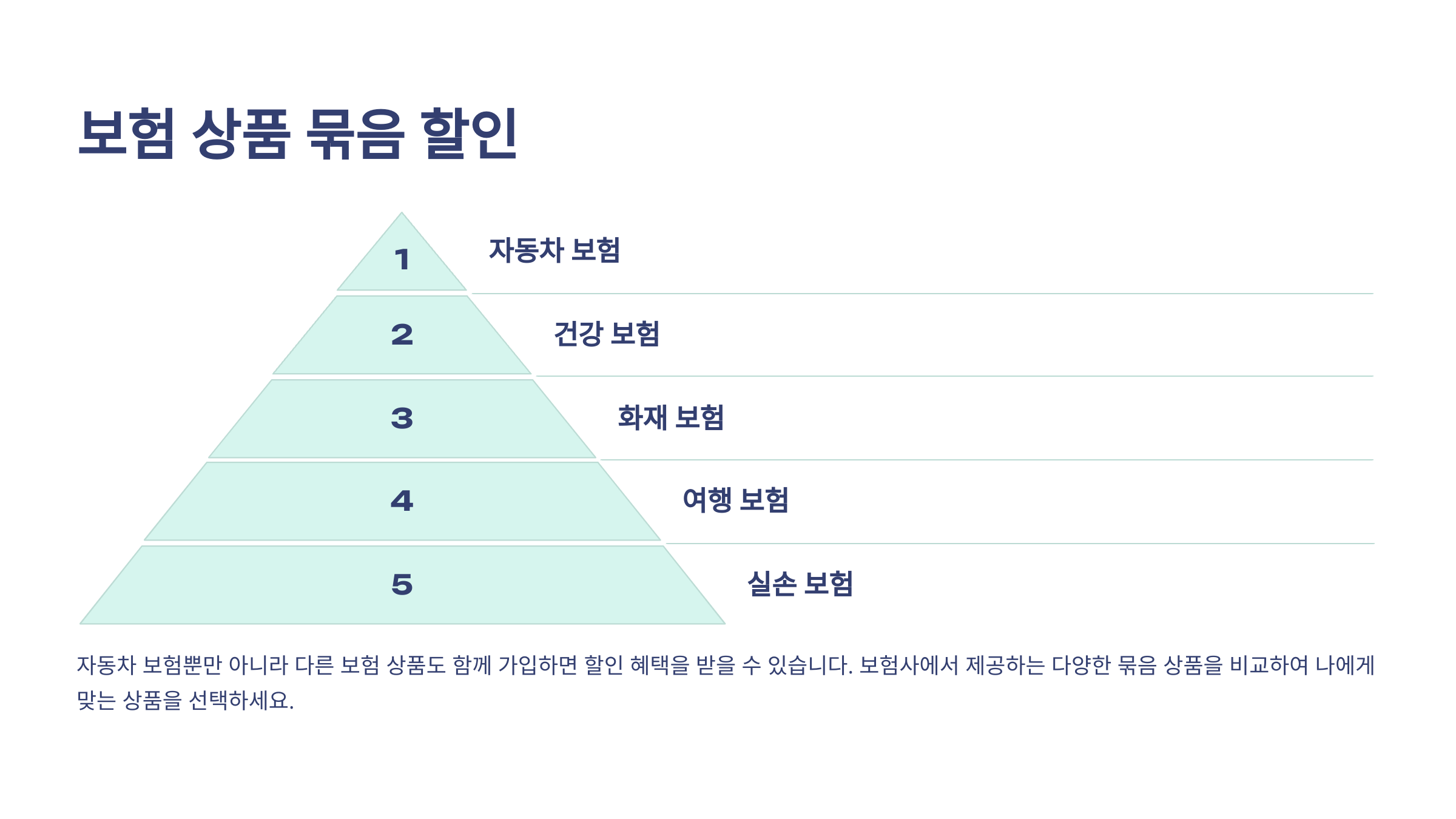 보험 상품 묶음 할인을 이용하면 관리가 편리해지고, 경제적으로도 효율적이에요. 여러 상품을 한 번에 비교하고 가입할 때 꼭 할인 여부를 확인하세요!