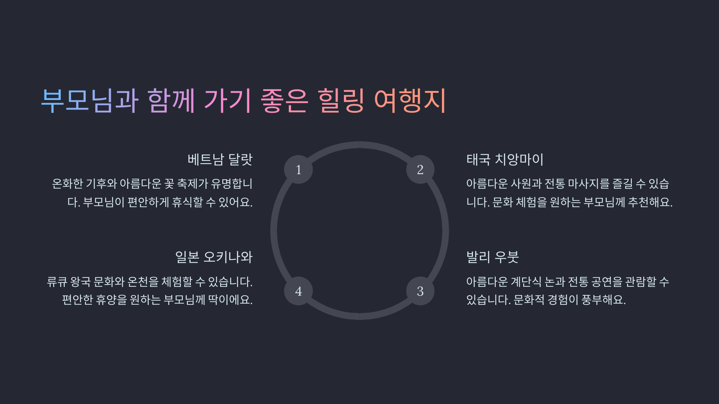 🚀 이어서 부모님과 함께 가기 좋은 힐링 여행지를 추천해 드릴게요!