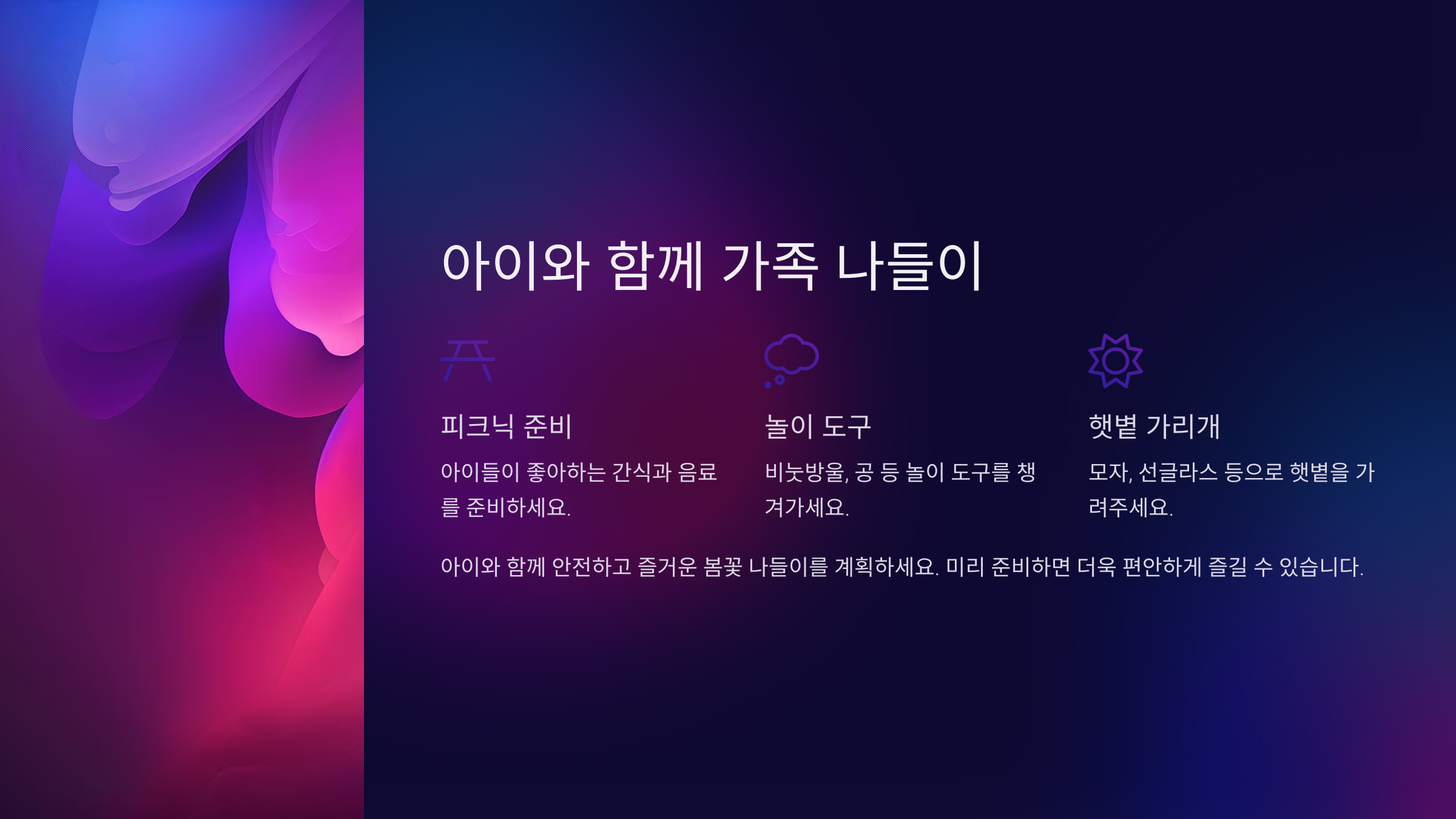 가족과 함께 봄꽃 나들이는 아이들에게도 좋은 추억이 될 수 있어요. 놀이와 체험이 함께할 수 있는 명소들이 많답니다. 🌸👨👩👧👦