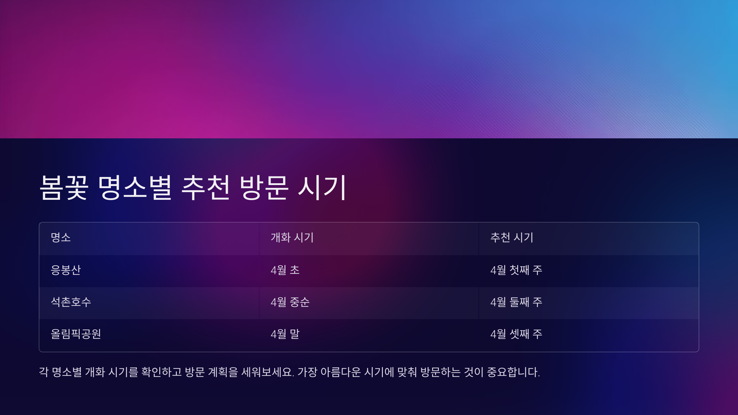 🗓️ 봄꽃 명소별 추천 방문 시기